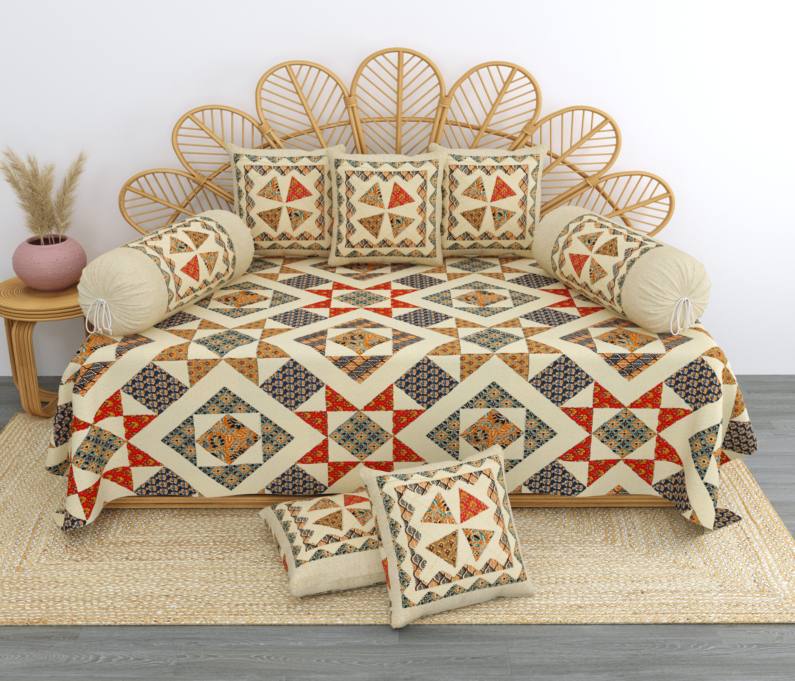 Cotton Diwan Set 8 Pieces – 1 Diwan Bed Sheet, 5 Cushion Covers and 2 Bolsters